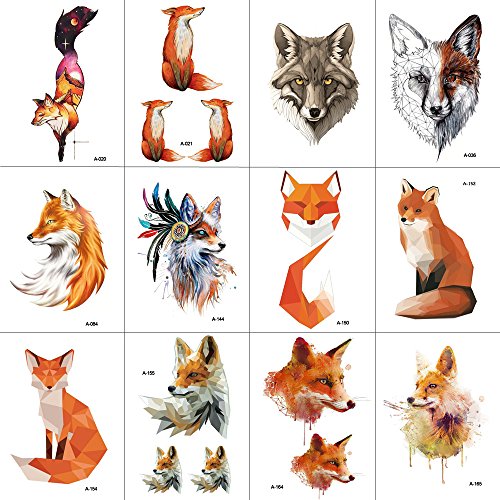 WYUEN 12 PCS/lot Fox Temporary Tattoo Sticker for Women Men Fashion Body Art Adults Waterproof Hand Fake Tatoo 9.8X6cm W12-02