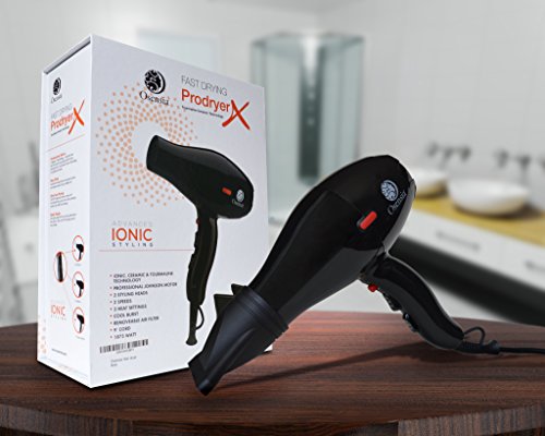 Osensia ProDryer-X Professional Series - 1875 Watt Dryer with 2 Attachments, 2 Speeds, 3 Heat Settings with Cool Burst Shot for long lasting hold and shine - Advanced Tourmaline Technology improves moisture retention, reduces static & frizz and cuts drying time in half - Extra long cord and removable air filter for easy cleaning.