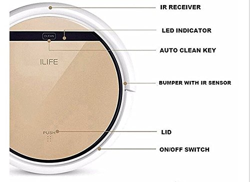 -. Feature : ★ Vacuuming sweeping damp mopping all in one, maintain gleaming hard floors / ★ New powerful motor with max mode and pet hair technology picks up furs,debris,dust and dirty easily and efficiently / ★ Small slim light design and smart sensors ensure V5s pro to know your home and clean where dirt hides. / ★ Automatically docks, recharges and adjusts to all hard floor types - tile, hardwood, laminate & more. / ★ What is new on ILIFE V5s pro than V5s: Advanced i-dropping technology makes mopping more efficient and reliable. Enhanced battery extend V5s pro' running time up to 140 minuts. Larger roadrover wheels with self-rescue technology freedomly goes over uneven flooring.