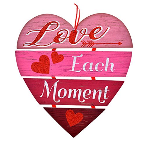 Hanging Valentines Wall Decoration Message / Love Each Moment Quote / 11.25 x 12.5-in Wooden Plaque