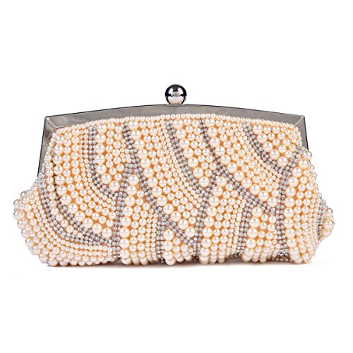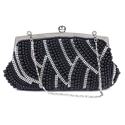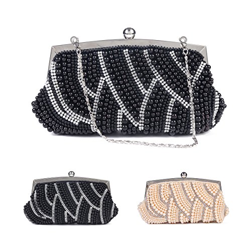 Product Description This pearl embroidery clutch has a decorative boarder along the top of the clutch that exudes high class fashion. It Ball clasp closure top and opens to a functional bag for personal items, cash or cards. The clutch can convert into additional styles with its strap styles: A Short Chain Handbag - allow you to keep your purse close to your body without holding it in your hand -Short Strap Drop: 41cm(16.14inches)and A Long Shoulder Chain - This hands free option lets your bag hang low or across your chest - Length Strap Drop: 120cm(47.24"inches).Approximate Dimensions:23cm*4.5cm*15cm(App:9.05"*1.77"*5.90"inches). 0