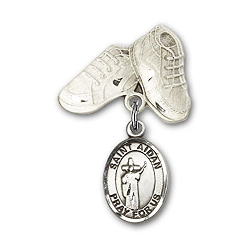 -. Title : Sterling Silver Baby Badge with St. Aidan of Lindesfarne Charm and Baby Boots Pin 1 X 5/8 inches