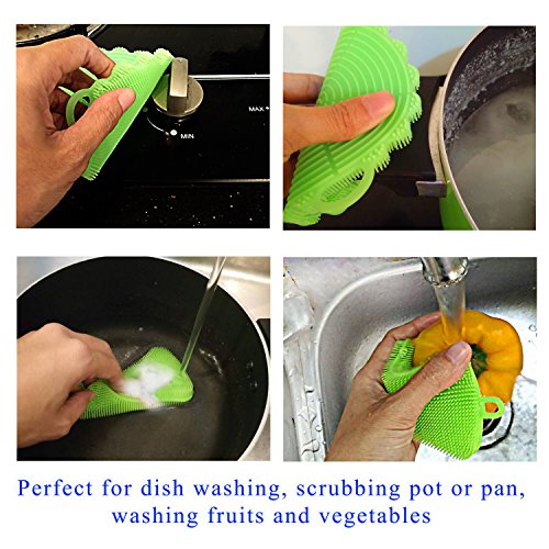 - ✅GOOD KITCHEN CLEANING TOOL TO REPLACE TRADITIONAL SIlicone SPONGE OR RAGS: This Silicone Dish Scrubber silicone scrubber washing brush is made of food grade silicone, harmless, non-toxic and durable. It's soft and flexible, easy to reach corners of glasses and cups and do no harm to your hands. Heat resistant, speedy naturally dry, perfect for dish washing, scrubbing pot holder or pan, washing fruits and vegetables .