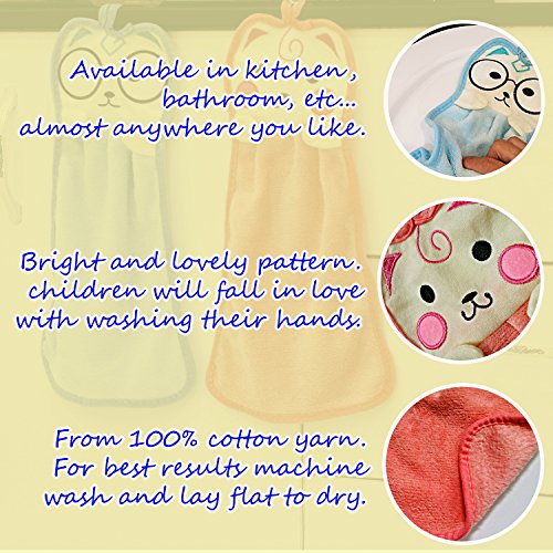 - ✅BRING WARM & HEALTHY TO YOUR FAMILY by Lovely cartoon hanging towel for bathroom: These Cartoon Towels are also incredibly convenient in the kitchen. 100% cotton yarn is soft, comfortable, can protect children's skin by premium quality. Available in kitchen bathroom, etc.. almost anywhere you like. Bright and lovely pattern hanging towel for kitchen, children will fall in love with washing their hands. For best results machine wash and lay flat to dry delicate fluffy towels.