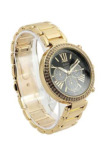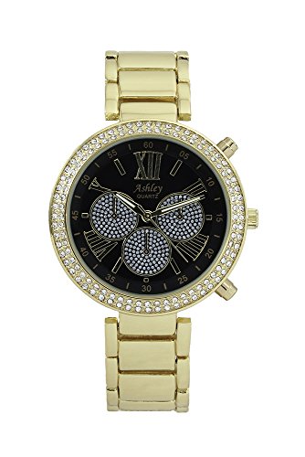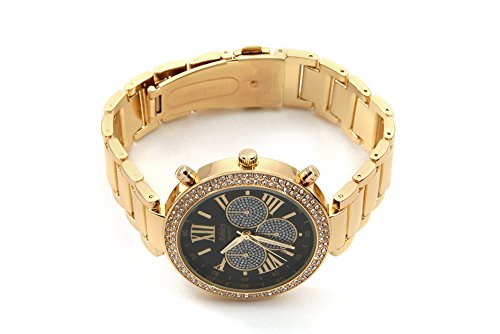 Ladies Stunning Rhinestone Pave' Gold Tone Watch with Black Dial - 8539XII Gold/Blk