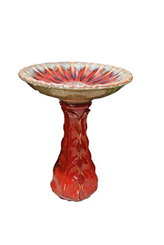 Plutus Brands Red Ceramic Birdbath with Green Rim