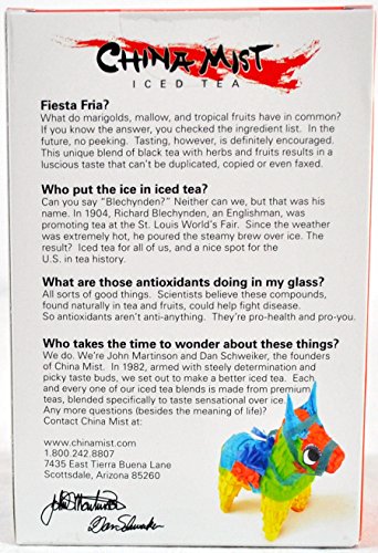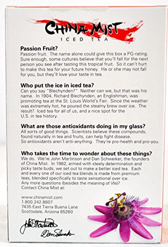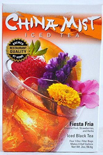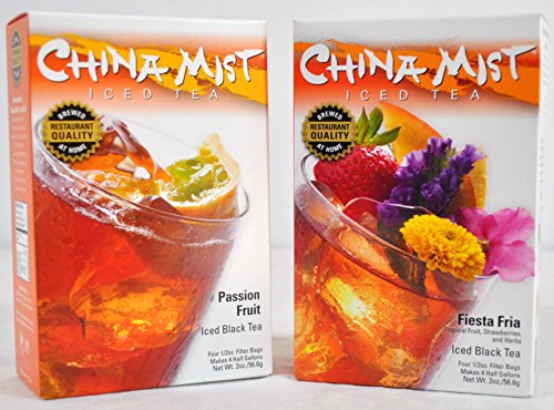 -. Feature : Includes 2 Flavors of China Mist Iced Tea / 1 Box Passion Fruit Iced Black Tea / 1 Box Fiesta Fria Iced Black Tea (includes Tropical Fruit, Strawberries & Herbs) / Each box makes 4 half gallons of tea / Warning: Teas do contain caffeine