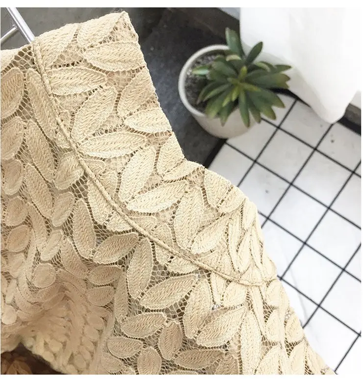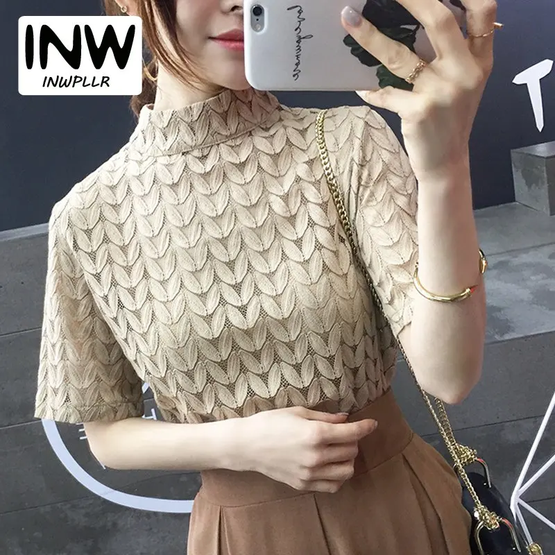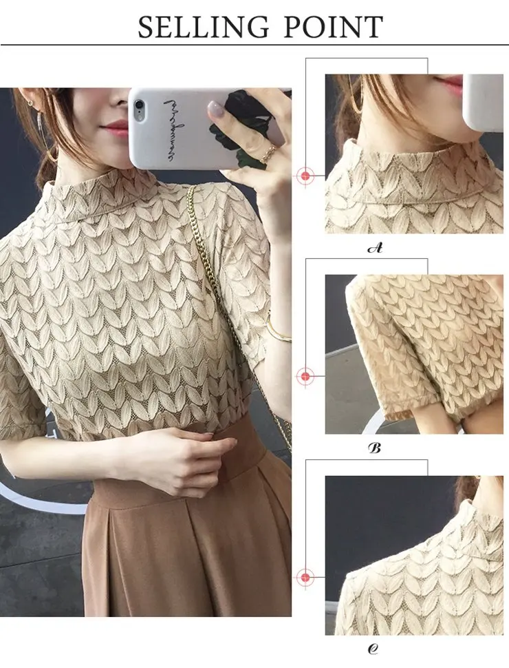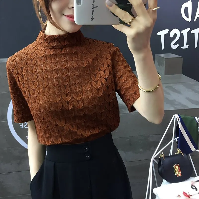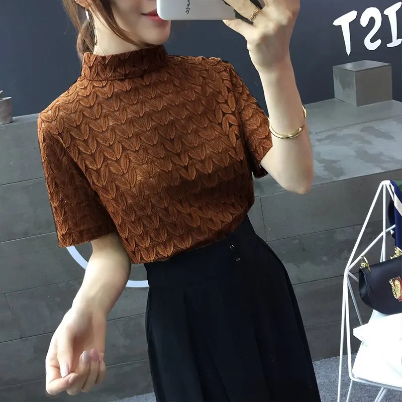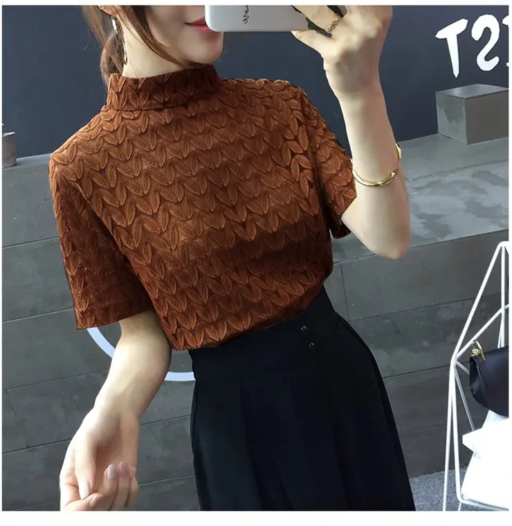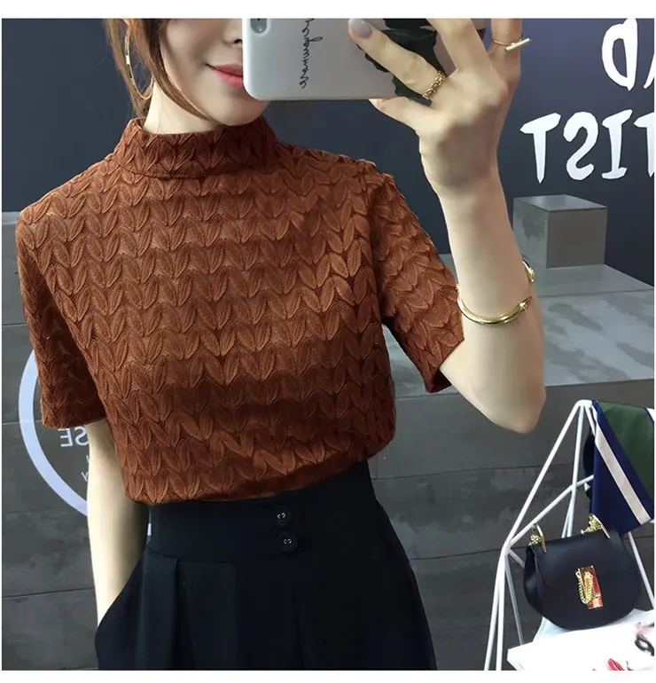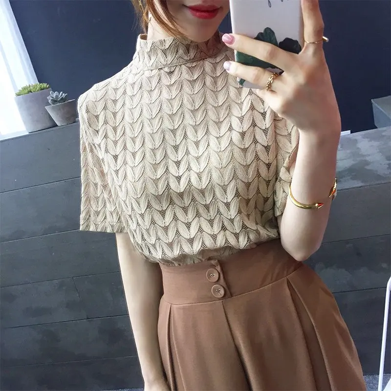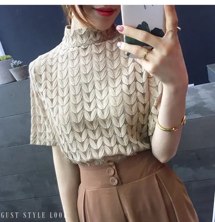 :2018 Fashion Leaf Lace Tops Women's Casual Short Sleeve Femme Blouses