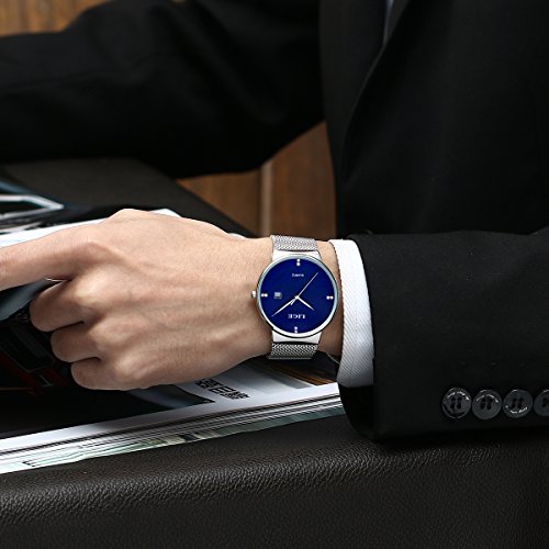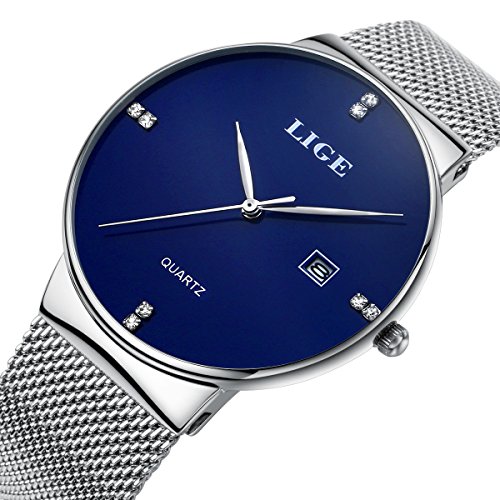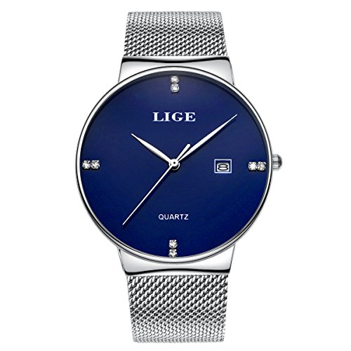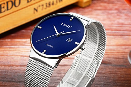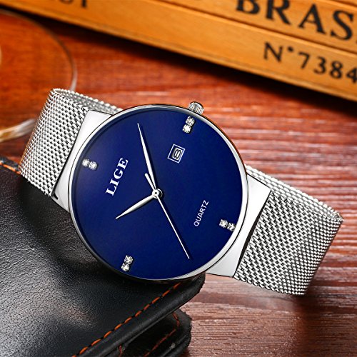 -. Title : LIGE Slim Case Mens Watches with Mesh Band Waterproof Calendar Wristwatch Blue