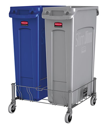 Rubbermaid Commercial Products Vented Slim Jim 2 Trash Can Dolly, Stainless Steel, 1956191
