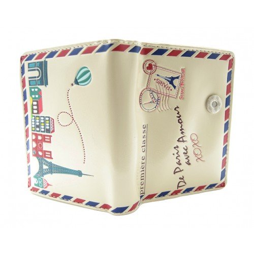 Binding : Apparel Product Description Ooh La La! Fall in love with the Paris Love Letter wallet. Holds your cash and cards securely. Features: 4 credit card slots, 1 ID card slot, 1 large money pocket, exterior magnetic snap closure, and a large zippered back pocket with divider. Materials: faux leather. Product Dimensions: 4 x 4.5 x 1 in 0