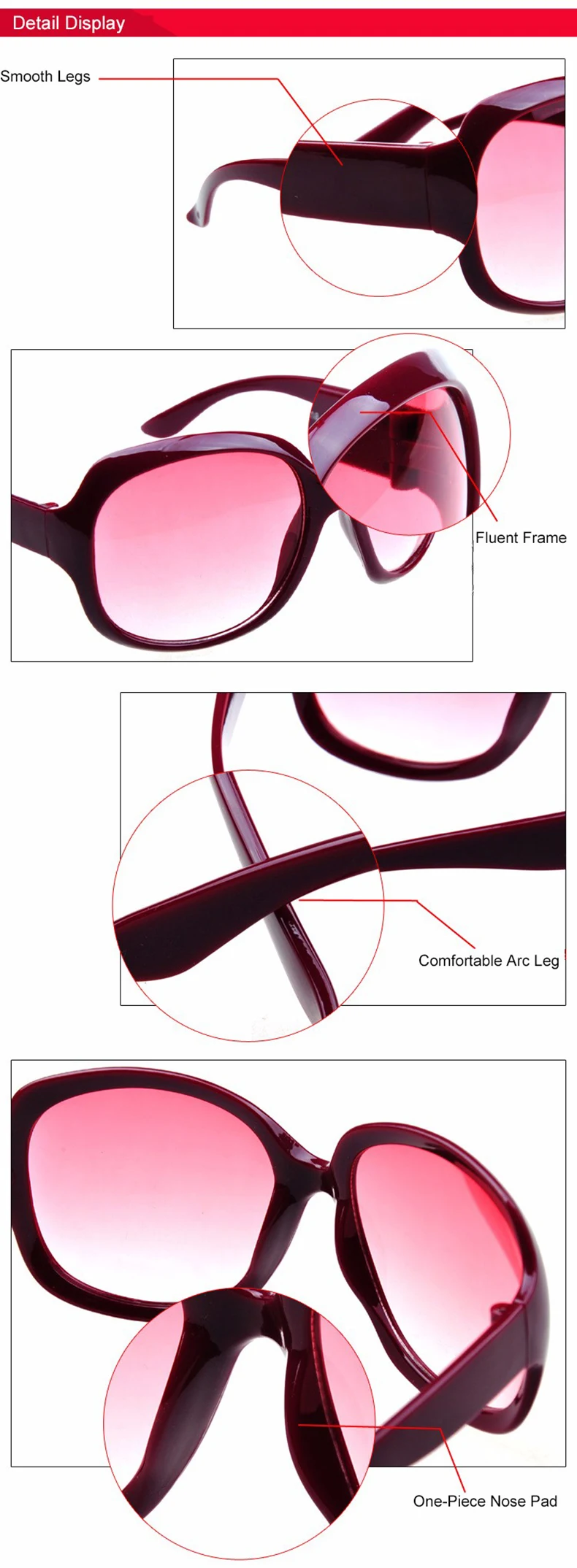 Len Color:Red,White,Black,Brown Gradient Lenses