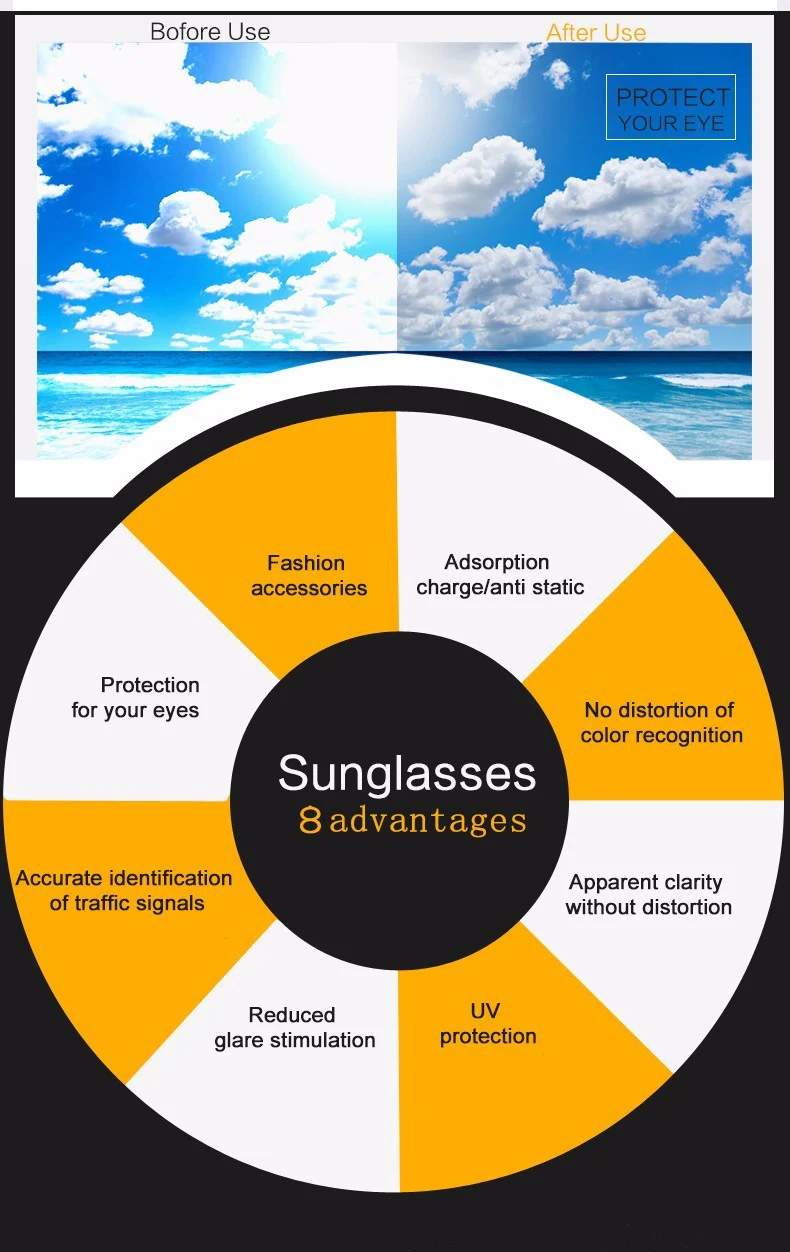 Sunglasses Function:100% UV400 Protect Eye Against Harmful Outdoor Rays
