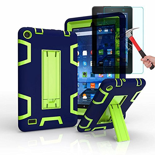 -. Title : Fire 7 2015 Case,Fire 7 Case With Tempered Glass Screen Protector,I-VIKKLY [Kickstand] Heavy Duty Hybrid Shockproof Case For Amazon Fire 7 Inch Tablet (5th Generation - 2015 release)
