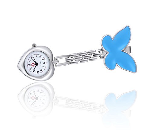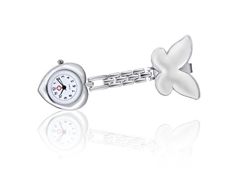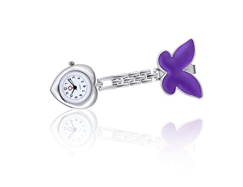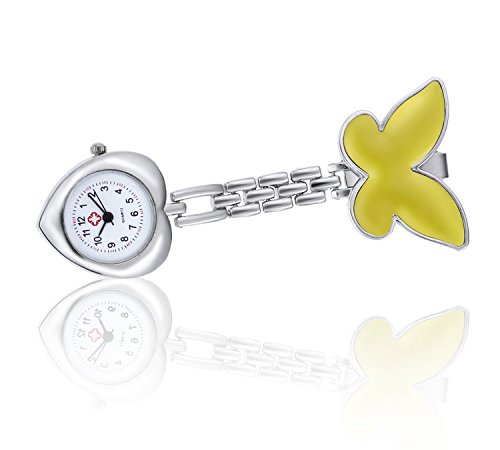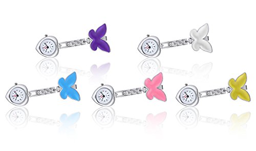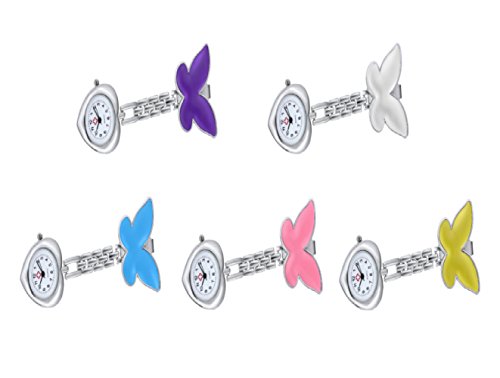 -. Title : Lovely Butterfly Face Nurse Pocket Watch Hanging Clip Pin on Fob Watch with Quartz Movement (Pack of 5)