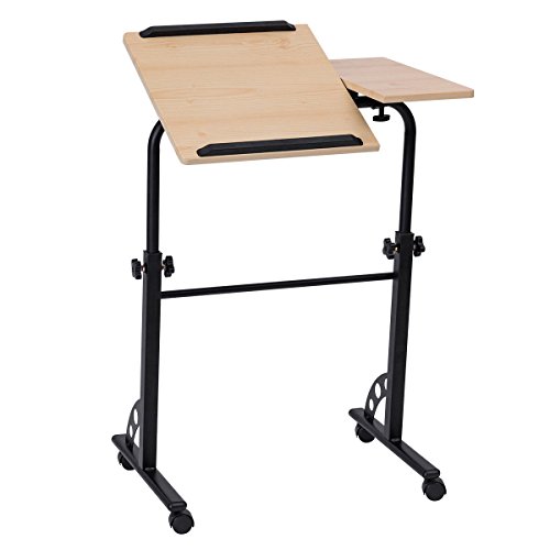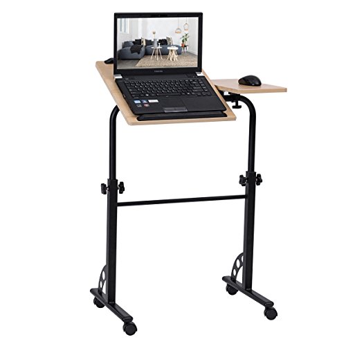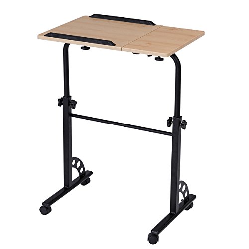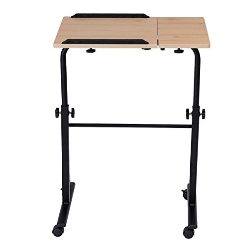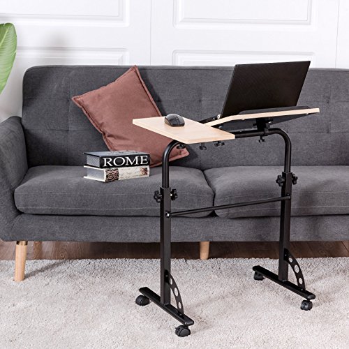 -. Feature : 【Multi-Function】With elegant look and unique design, our laptop desk is perfect for a standing desk, a table to write, to work on your laptop, watch movies, or present project presentations at work. / 【Adjustable Height and Angle】The height of table can be adjusted from 24.5" to 34.6" to meet your different needs. And you can also change various angle of the table top to keep you comfortable on the couch, recliner or bed when watching your computer or iPAD. / 【Thoughtful Designs】With split design, the small table top allows you to put your mouse, mobile phone, cup or other accessories. And equipped 2 edges stoppers can prevent your objects from sliding off when you adjust the table tilted. / 【Stable & Durable】Constructed with H-shape metal frame and high quality table board, our table is much more stable and durable which lasts more years to use. / 【Lockable Casters】There are four casters on the base and two of them are lockable, which allow you to easily move the desk around any room or lock them to make your it stationary.