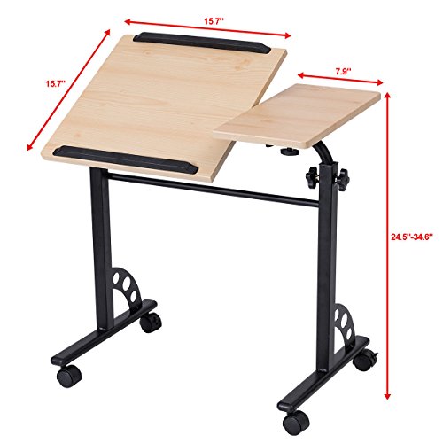 -. Title : Tangkula Portable Laptop Desk Adjustable Height Notebook Computer Stand w/ Tilting Surfaces for Right and Left Natural