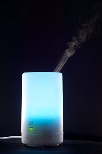 Ultrasonic diffuser dispenses essential oils into the air using high frequencies. It separates the essential oils into small particles producing a micro-mist that is circulated into the atmosphere in your favorite room
