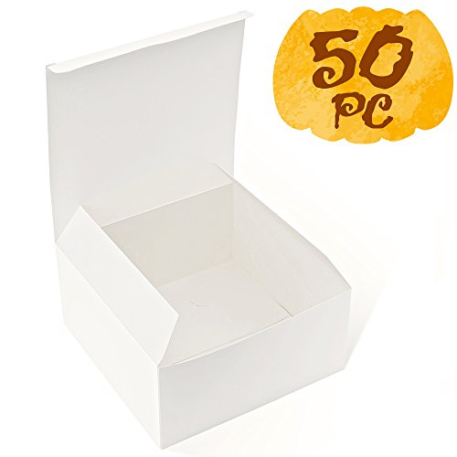 MESHA White Boxes 50 Pack 8x8x4 Inches, White Cardboard Gift Boxes with Lids for Gifts, Crafting, Cupcake Boxes