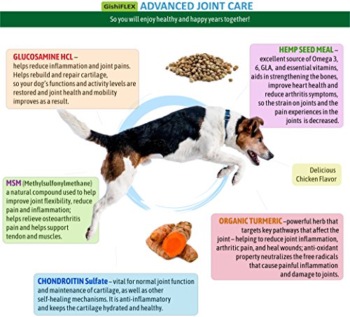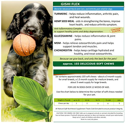 GishiFlex Advanced Joint Care is manufactured in a FDA inspected GMP facility in the USA, using all natural ingredients. This product is designed to treat as well as prevent conditions such as canine arthritis or hip dysplasia, and you are covered by our 30-DAY MONEY BACK GUARANTEE.