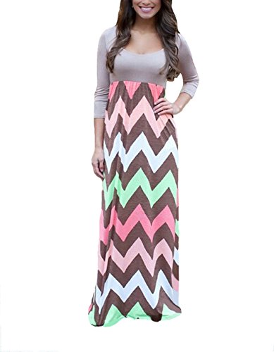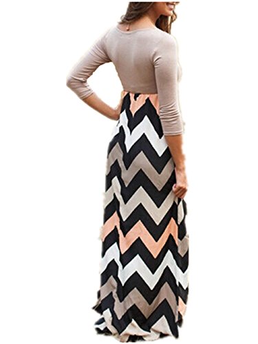 Maxi Dress Women Chevron Stripped Dresses-back 100% Guanranttee (XL, grey)