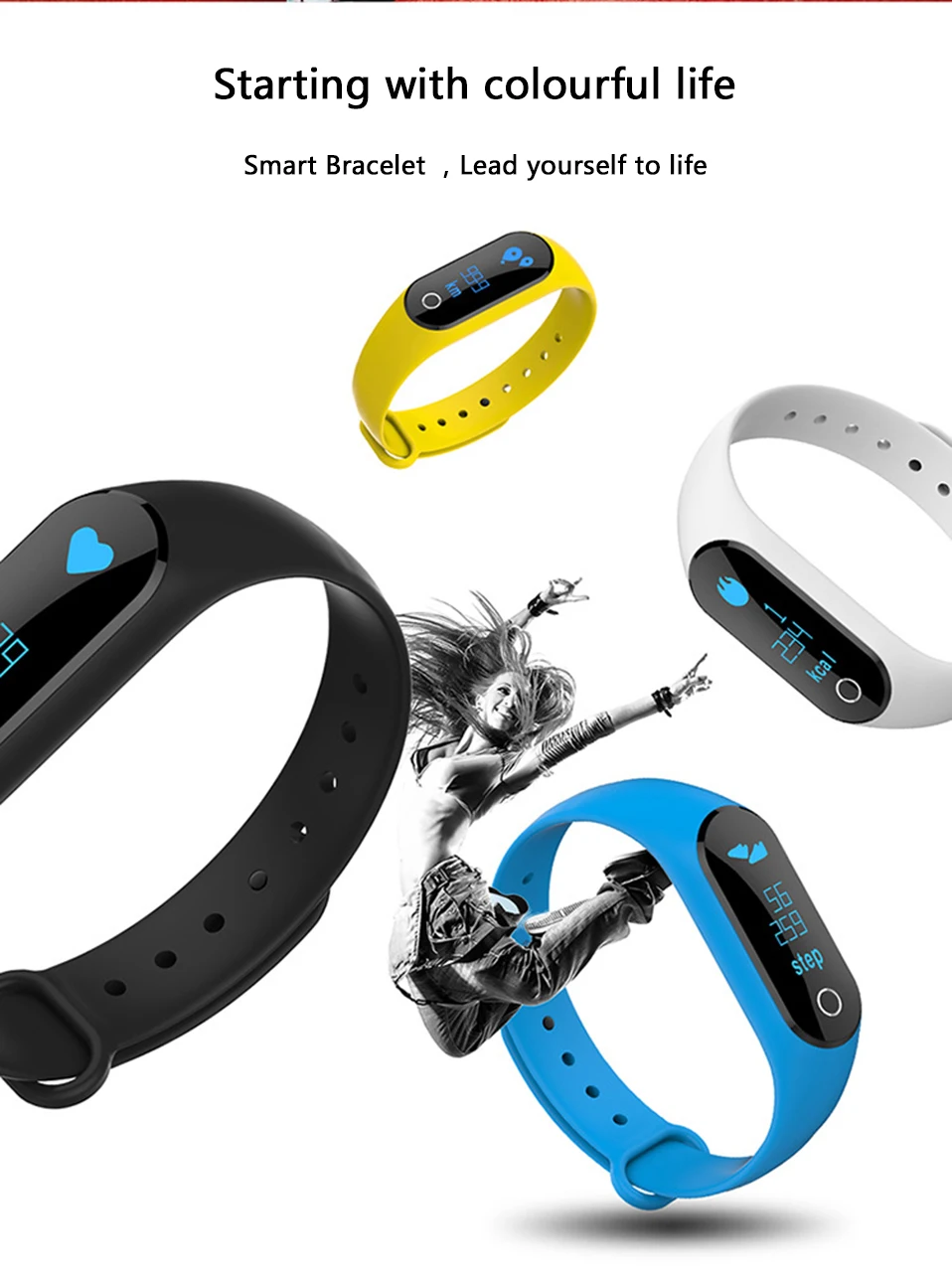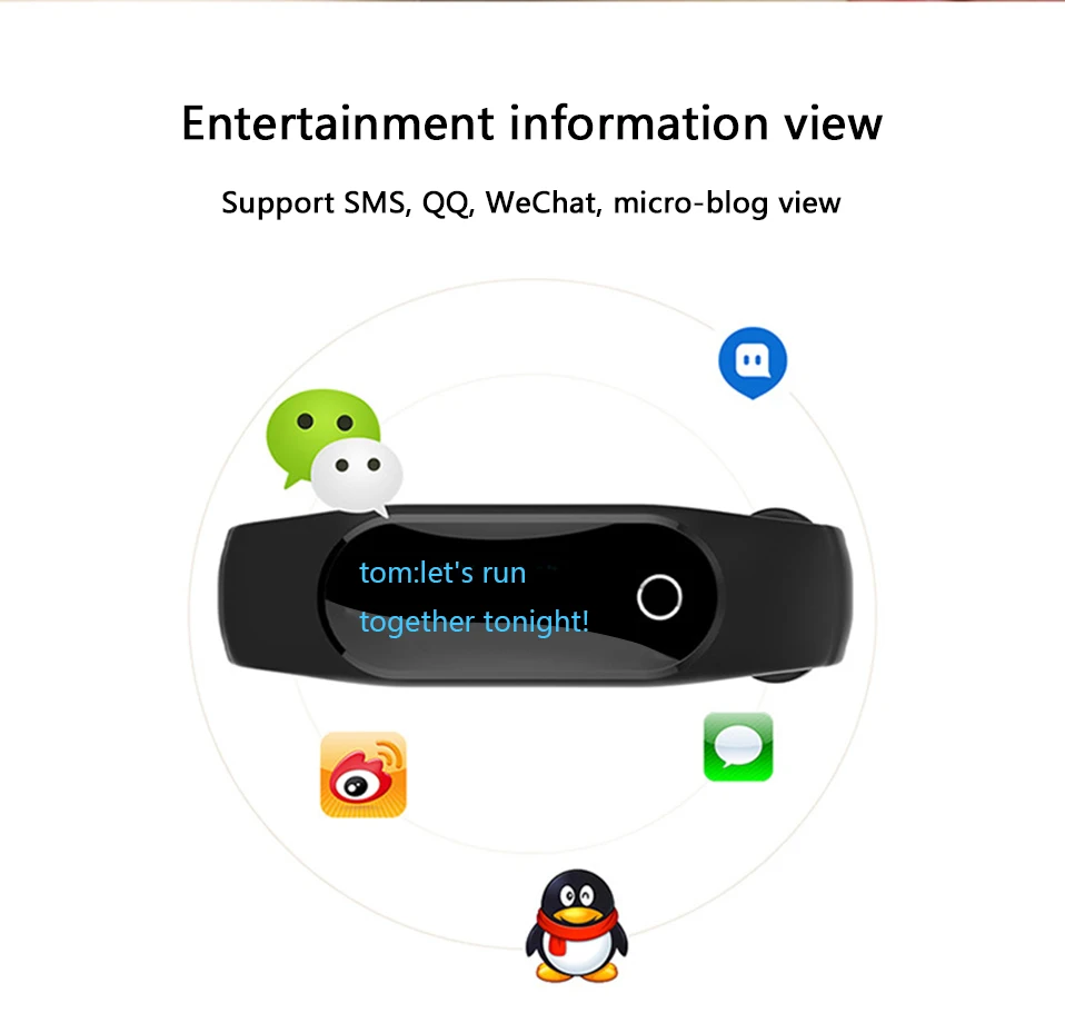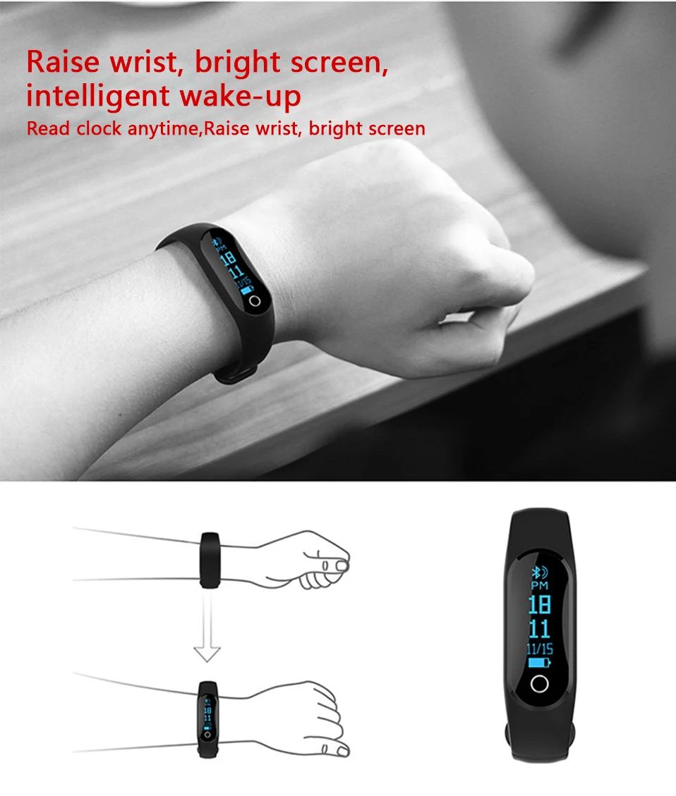 Feature:Sleep Tracker,Call Reminder,Shock Resistant,Message Reminder,Heart Rate Monitor,LED display,Fitness Tracker,Alarm