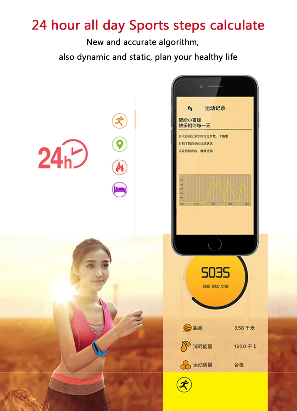 Function :Passometer fitness Tracker heart rate wristband