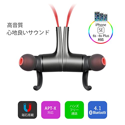 -. Feature : 【軽量でネックレスのようなデザイン】 イヤホンの背中部分に磁石を内蔵しているため、使用しない時は左右のイヤホン同士を磁力で固定することができます。 15gの超計量設計で持ち運びも容易、左右を固定するとネックレスのように、アクセサリー感覚で首に掛けることもできます。 / 【高音質なapt-Xとノイズキャンセルを搭載】 最新技術のBluetooth4.1で低消費電力、高音質コーデックのapt-Xで、音楽をより美しく忠実に再生できます。 CSR(R)社のCVC6.0 ノイズキャンセル機能を搭載し、クリアな通話を実現。音質は高音域と低音域を控えめにし、中音域を重視したチューニングです。 / 【より良い装着感】 人間工学に基いた耳掛け型のデザインは、耳の上部にフィットする柔らかなフックを装着し、イヤホンを耳にしっかりと固定出来ます。 ランニング、ジョギング、トレーニング、スケート、キャンプ、運転を行う時でも、落下を心配する必要はなく、正確な位置へ装着を行う事ができます。 / 【大容量のバッテリー】 1回の充電はわずか2時間、最大6時間の連続音楽再生、180時間の待ち受けが可能です。通勤通学にご使用いただいても、充分なスタミナを確保。バッテリー不足を心配せず、長時間安心してご使用いただけます。iOS機器(Apple社製品、iPhoneやiPad、iPodなど)では、バッテリー残量も確認できます。 / パッケージ内容】 ●SoundPEATS Q12 Bluetooth イヤホン本体 ●イヤーピース●イヤーフック●キャリングポーチ●USB充電ケーブル●クリップ●結束用パーツ ●日本語取扱説明書●お買い上日より12ヶ月の保証期間がついております。※メーカー直営店以外の類似商品をご購入の場合、12ヵ月の保証の対象外となります。予めご了承ください。