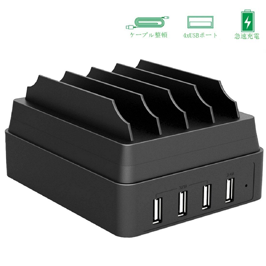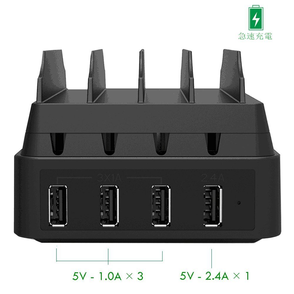 With four USB charging port designs (one for 2.4 A and three for 1A), you can charge 4 terminals at the same time simply by connecting to a powerful charger.