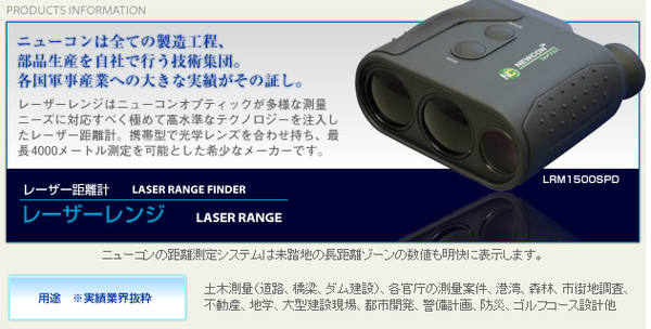 ニューコンは同時にハイテク部品の供給者でもあります。北米の広大な測定環境は彼らに開発の手を緩めさせません。研究と生産工程を自社工場内で行う徹底した管理体制により最も多くのロングレンジ型レーザー距離測定器シリーズを製品化しています。
