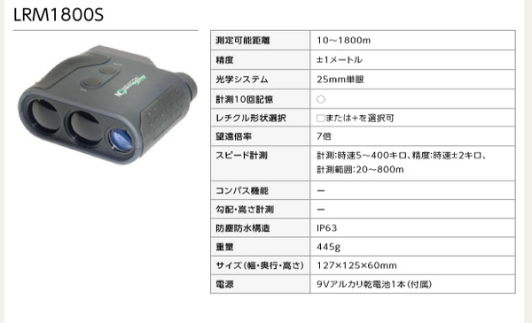 測定可能距離:10~1800m
