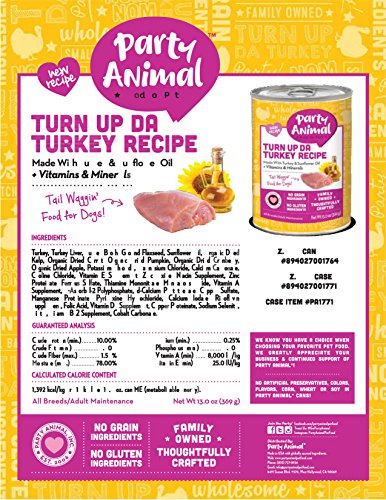 Party Animal DOG FOOD Pack of 12 13oz cans (TURN UP TURKEY) Grain FREE Gluten Free