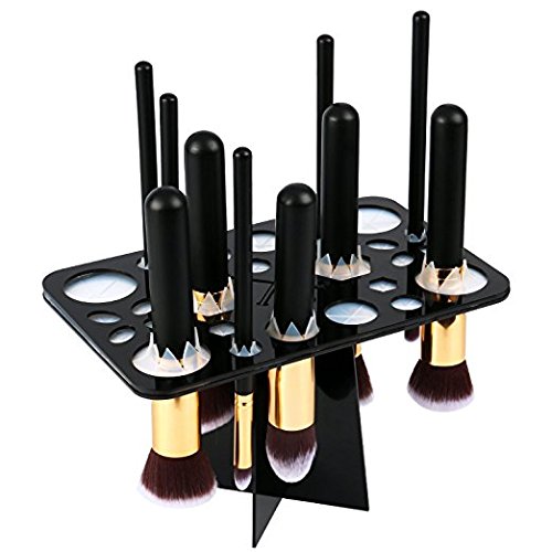 DRQ Cosmetic Makeup Nail Art Brush Holder Dryer Organizer Brush Tree Dryer Folding Collapsible Air Drying Rack Mix Size (26Holes Black)