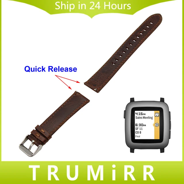 | [해외] 22 미리메터 빠른 릴리스 손목 송아지 정품 가죽 스트랩 조약돌 시간/조약돌 시간 스틸 시계 밴드 손목 벨트 팔찌 브라운 |