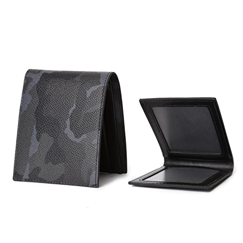 -. Title : New Camo Men Real Leather Bifold Wallet Youth Fashion Trend Purse with 2 Windows