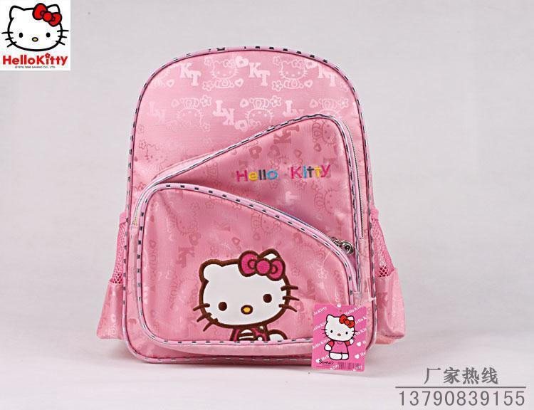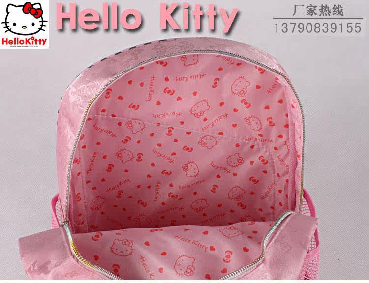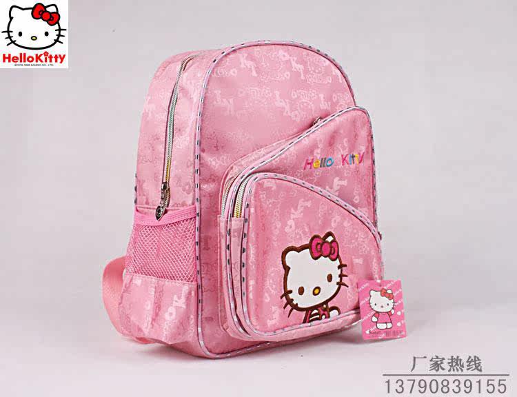 Product Overview: cute pink interior design care Hello Kitty, colored zippers, metal zippers Hello Kitty head, double a main bag, two pouch design, the front is embroidered apples, Hello Kitty in the middle, there is a small hand-held belt, children back tired adults also thought he was carrying a small bag large space, only about 360 grams, suitable for most of the children to use, both practical and cute ...