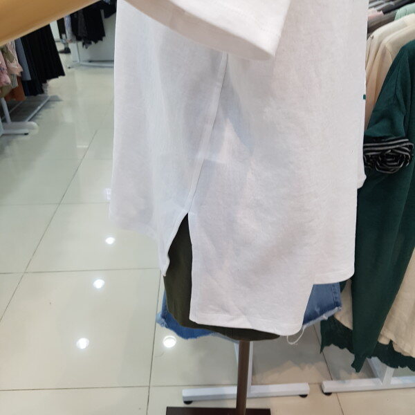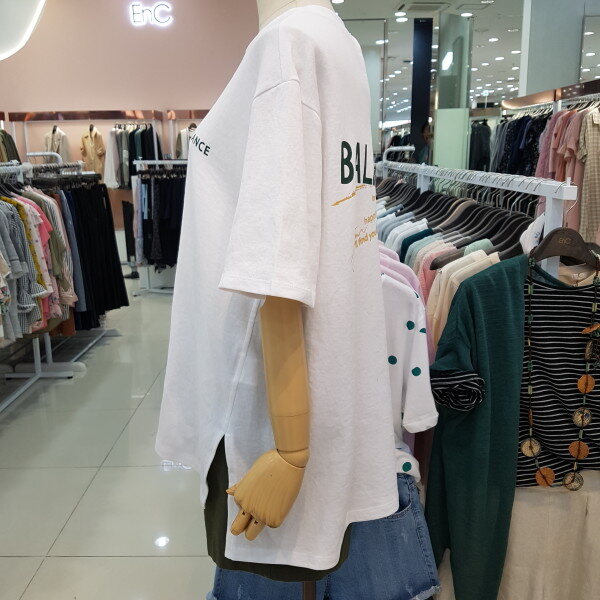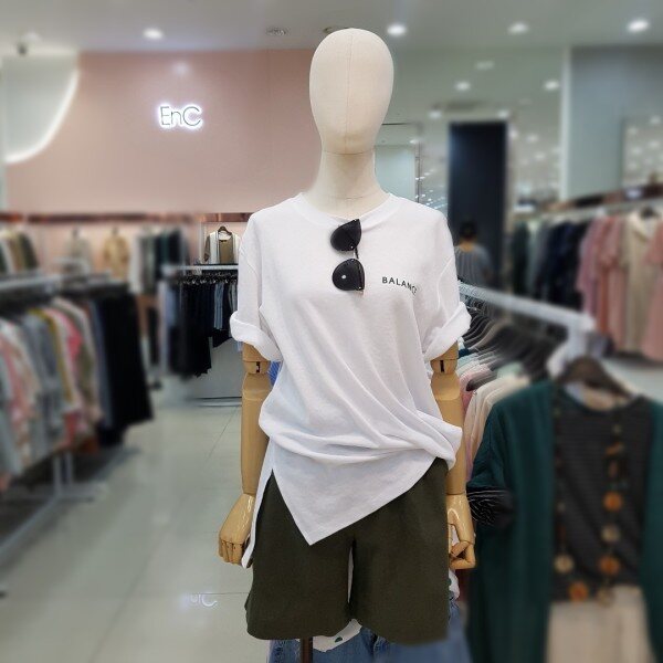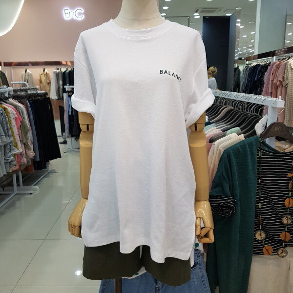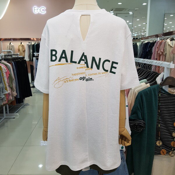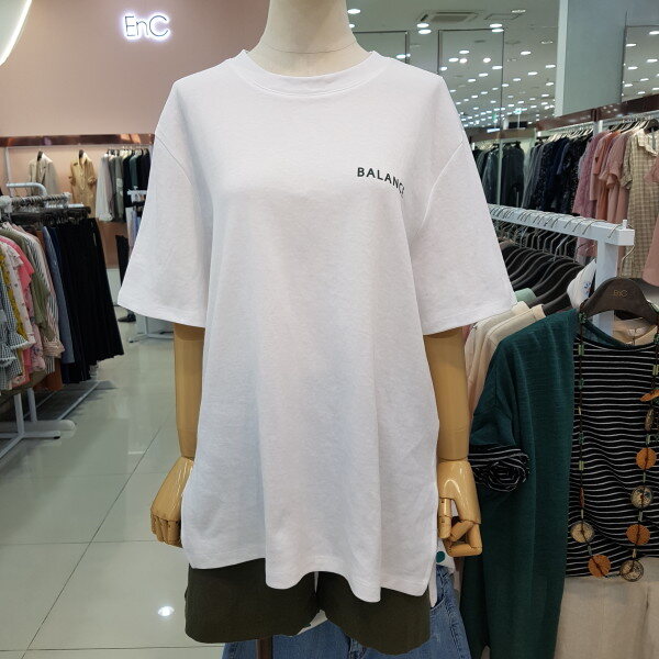 기본라운드넥선에 깔끔한 라인과 백라인의 목선 프린트 포인트로 반전감있는 티셔츠