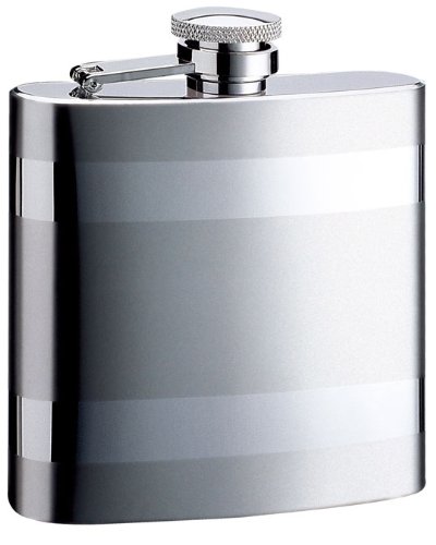 VISOL "DUO STRIPED" 2-TONE STAINLESS STEEL HIP FLASK, 8-OUNCE, CHROME
