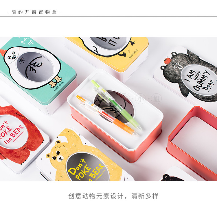 简约清新动物开窗置物盒 文具胶带饰品收纳盒 桌面文具盒