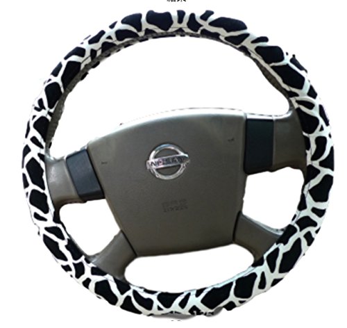 -. Title : (モーターケイエム)MOTOR K.M 車 ハンドル カバー 牛柄 ホルスタイン ブラック×シルバー 直径38cm 用