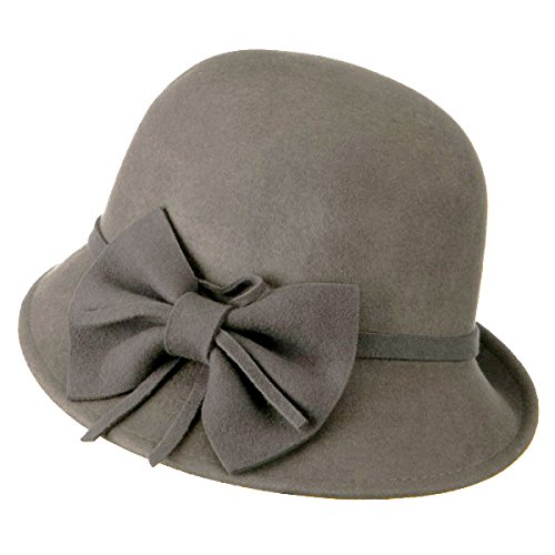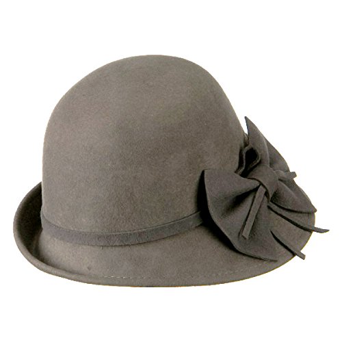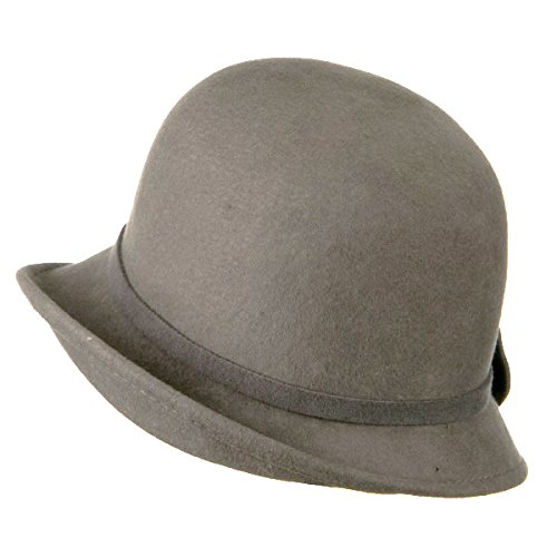 -. Title : Woman's Cloche Turned Up Brim Wool Hat - Grey W23S46F