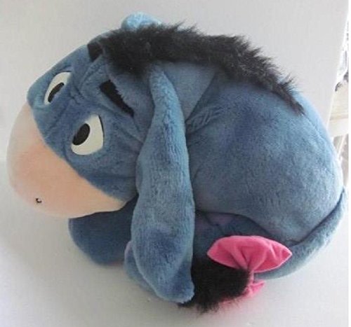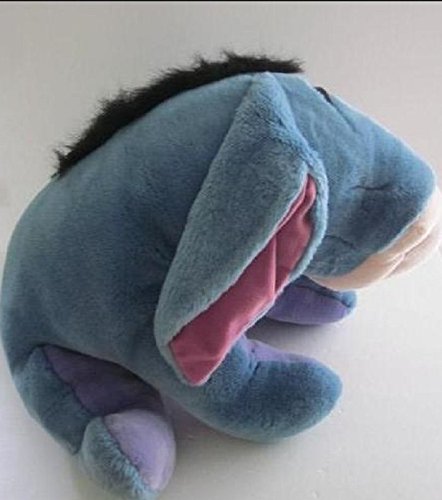 -. Feature : Eeyore measures approx. 16"x 21"x 18" / Gorgeous "Jumbo" sized plush / He says "Hello", "Good to see you", "It's me, Eeyore", "A hug would be nice" and more / Press his tummy to hear him talk