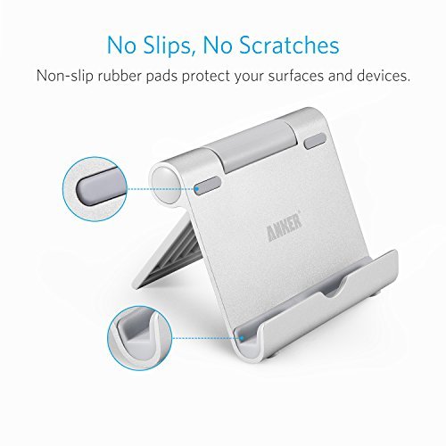 Anker Multi-Angle Aluminum Stand for Tablets, e-readers and Smartphones, Compatible with iPhone, iPad, Samsung Galaxy / Tab, Google Nexus, HTC, LG, Nokia Lumia, OnePlus and More (Silver)