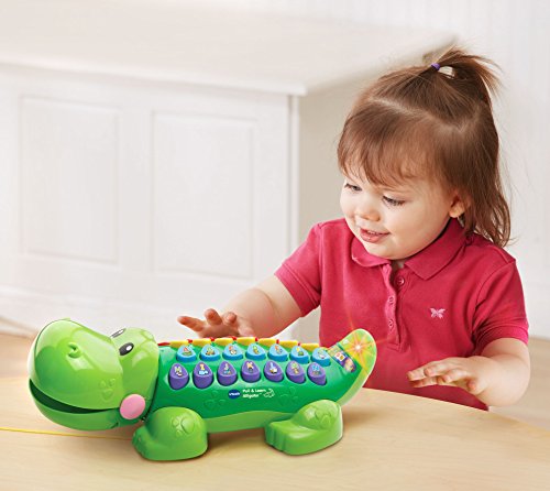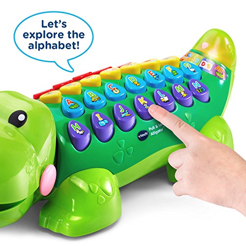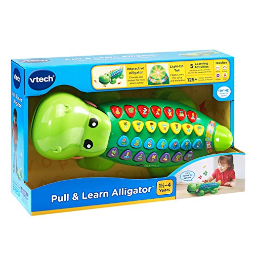 -. Binding : Toy -. Brand : VTech -. EAN : 3417761784006 -. Feature : The funny Pull and Learn Alligator by VTech is the perfect pal for teaching kids about letters and phonics; features 125+ songs, melodies, sounds and phrases / Explore five play modes and press the 26 letter buttons to explore phonics; animals, people and objects; hear silly sentences; or listen to music / Push or pull the interactive gator to build motor skills and watch his head move, mouth open and tail light-up; light-up tail flashes with the sounds / A silly sentence game lets your little one learn about alliteration through a variety of fun phrases; the alligator also includes a quiz game that reinforces learning / Requires 2 AA batteries (batteries included for demo purposes only; new batteries recommended for regular use); intended for ages 18 months to 4 years -. Label : V Tech -. Manufacturer : V Tech -. Model : 80-178400 -. MPN : 80-178400 -. PackageQuantity : 1 -. PartNumber : 80-178400 -. ProductGroup : Toy -. ProductTypeName : TOYS_AND_GAMES -. Publisher : V Tech -. Studio : V Tech -. Title : VTech Pull and Learn Alligator -. Warranty : 90 day warranty against manufacturer defects