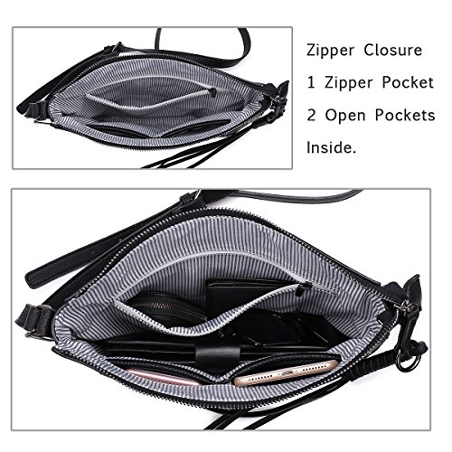 Cross Body Cell Phone Bag whole have zipper closure,1 zipper pocket & 2 open pockets inside.can hold iPhone, keys, money, cards, wallet,ect