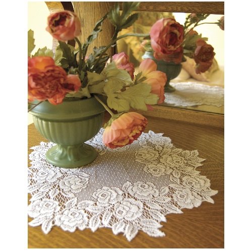 Heritage Lace Tea Rose 15-Inch Round Doily, White, Set of 2