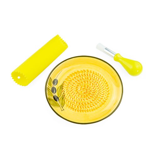 Ceramic Garlic Grater - Yellow With Olive Design