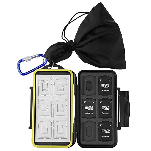 -. Binding : Electronics -. Brand : Beeway -. EAN : 6041975266255 -. Feature : Tough and water-resistant polycarbonate case for carrying memory cards. / Integrated Silicone waterproof seal. Anti static compound holds cards firm.Tough resin clamp ensures cards are safely locked away from the weather, water, damp, dust and anything else which could damage your memory cards and data. / Integrated strap loop allowing the case to be looped onto most camera straps for safe keeping or attached to camera bags/equipment bags etc ( carabiner is included). / You can put total 12 pcs SDHC / SD cards and 12 pcs MicroSD card in the both side slots. Each slot is strictly tailored to fit the card perfectly. There is a note that you can write something to distinguish the data inside, and also the note can keep the cards where it is firmly. / The high quality storage drawstring bag can keep your action cam or small camera with accessories safe and organised. -. Label : Beeway -. Manufacturer : Beeway -. MPN : LYSB01ERGYZK8-CMPTRACCS -. PackageQuantity : 1 -. PartNumber : LYSB01ERGYZK8-CMPTRACCS -. ProductGroup : CE -. ProductTypeName : PHONE_ACCESSORY -. Publisher : Beeway -. Studio : Beeway -. Title : Beeway® Tough Water Shock Resistant Protector Memory Card Carrying Case Holder 24 Slots for SD SDHC SDXC and Micro SD TF with Storage Bag & Carabiner