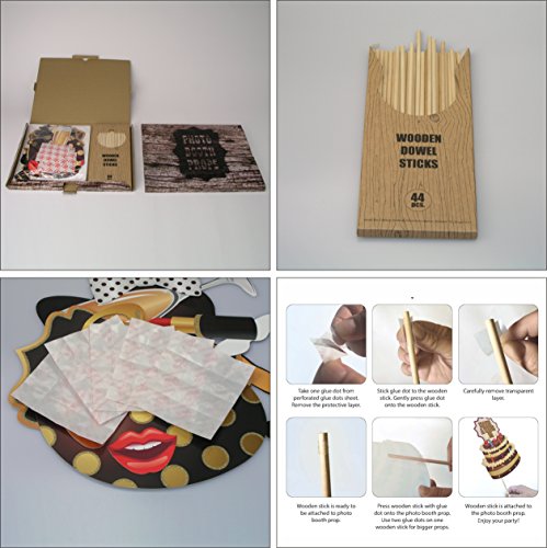 💲 GREAT VALUE: 44 WOODEN DOWELS and 80 CLEAR STICKERS are also included in the photo booth prop kit.