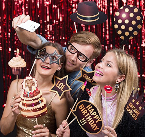 ZEZAZU Happy Birthday Party Photo Booth Props Funny DIY Kit 44 Pieces Luxury Edition With Real Glitter